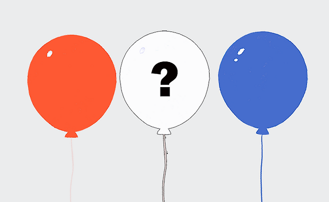 당신이 생각하기에 가운데 풍선은 무슨 색일 것 같습니까?