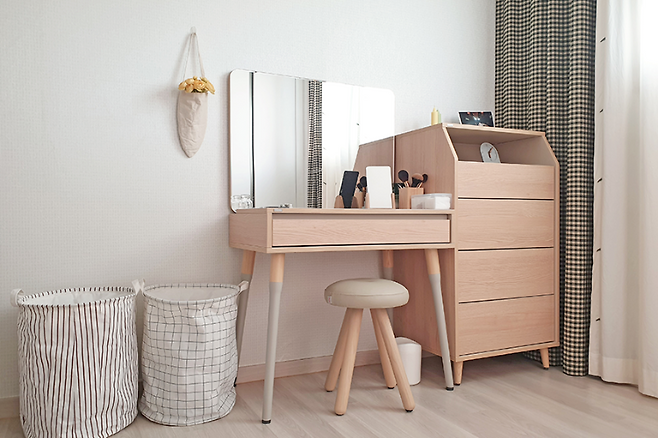가장 예뻐하는 가구인 화장대는 수납력을 포기하면서 디자인을 선택한 제품인데요, 결국 넘치는 화장품을 감당 못 하고 옆 수납장을 추가 구입했습니다.