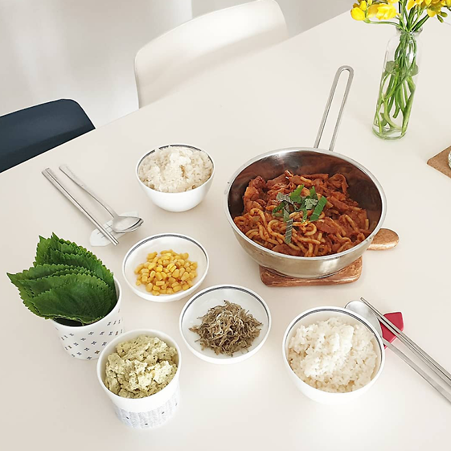 저녁 식사는 최대한 다이닝 공간에서 하려고 노력해요. 하루 동안 있었던 일을 공유하는 시간이 참 좋아요. (거실에서 TV 보며 먹는 게 더 좋은 거 같기도 하네요ㅎㅎ)