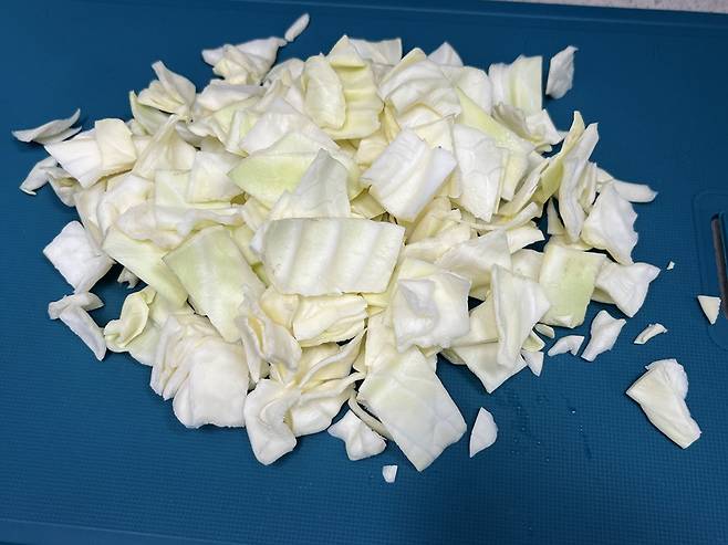 양배추는 편한 크기로 자른 다음 수분을 최대한 제거해 주세요. 세척을 하지 않고 보관하면 수분이 덜 생겨 오래도록 신선하게 유지할 수 있습니다.