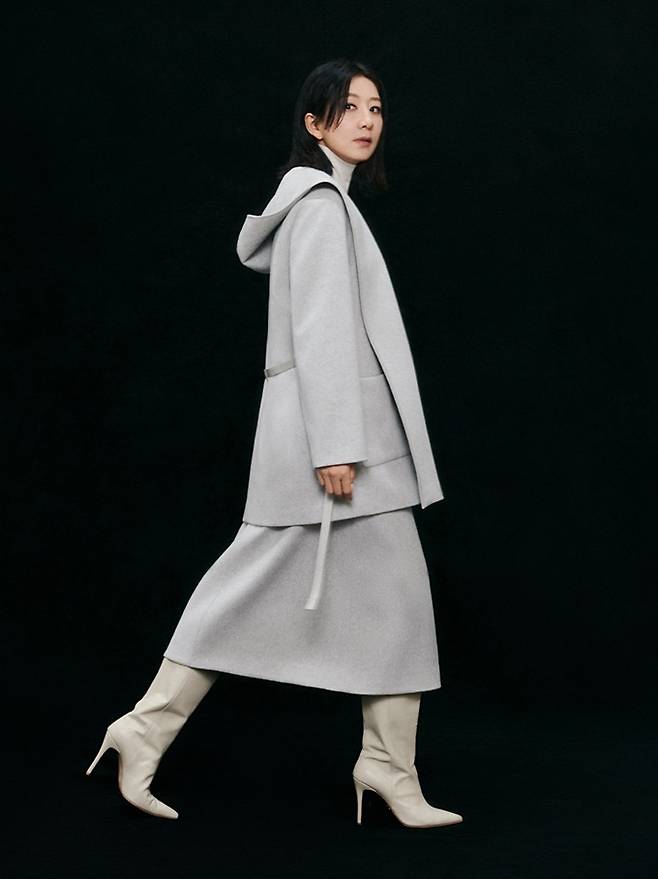 또한 김희애는 여유로운 실루엣의 후드 하프코트와 같은 소재의 펜슬 스커트, 싸이 하이 부츠를 매치해 고급스러운 올드머니룩의 정수를 선보였다.