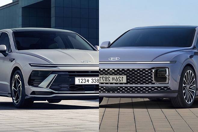 쏘나타 인스퍼레이션 트림의 기본 가격은 3603만원이고, 그랜저 프리미엄 트림은 3768만원부터 시작한다.