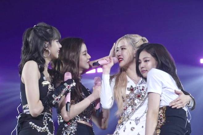 코첼라 헤드라이너로 무대에 오른 블랙핑크는 1일 차 무대를 마치고 내려와 스태프들과 포옹을 나누었습니다.