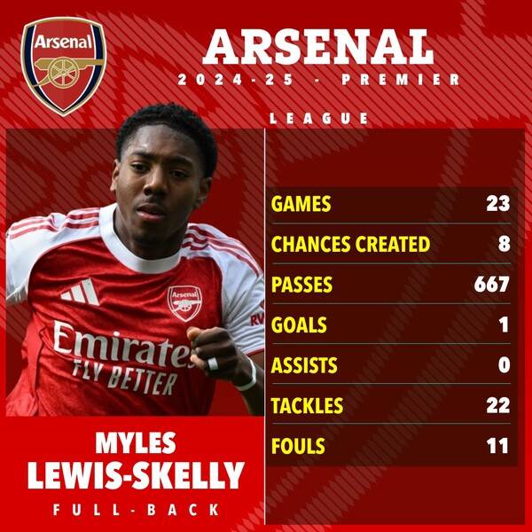 루이스-스켈리는 잉글랜드 국적의 2006년생 유망한 레프트백으로, 저돌적인 돌파와 드리블 능력이 강점이라 평가받는다. 2015년 14세의 나이로 아스널 유스 팀에 입단한 성골 유스이기도 하다. 연령별 팀에서 꾸준히 활약하며 월반을 거듭했다. 이에 작년 9월 맨체스터 시티전에서 후반 막판 교체 투입되면서 프로 데뷔에 성공했다. 당시 엘링 홀란드와 언쟁이 붙은 것으로도 유명해졌다.