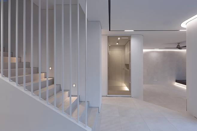 있었기에 색상을 밝은 회색으로 통일했다. 여기에 필로티와 발코니 등을 통해 전체적으로 리듬이 느껴지는 깊이감을 더했다.