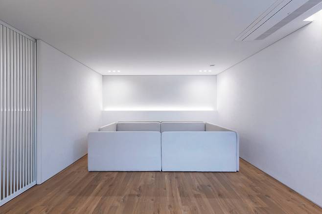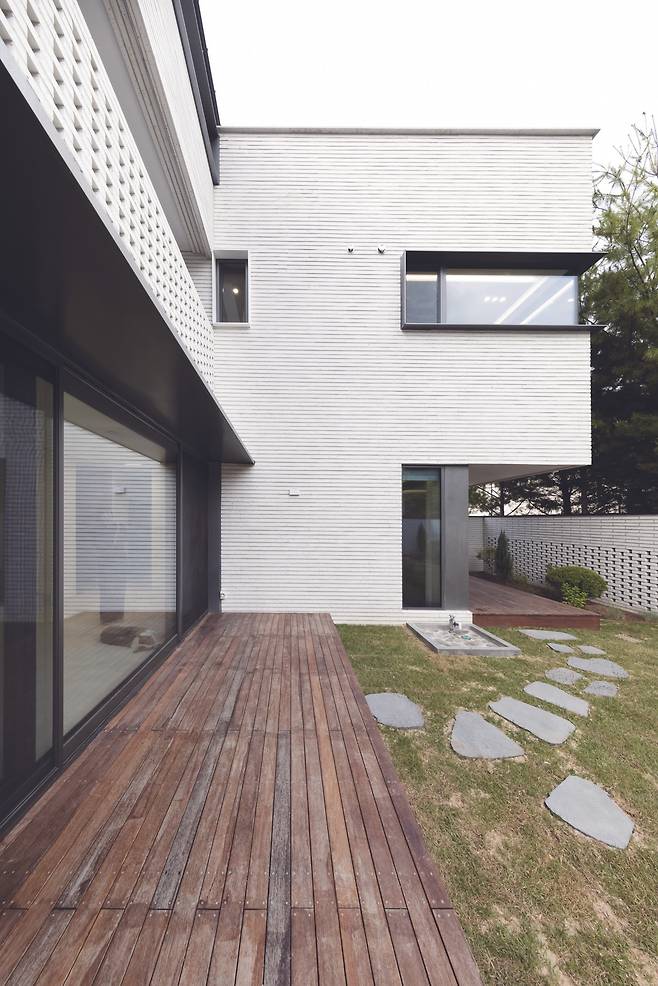 채우기도 비우기도 하며 외부 시선을 거를 수 있을 만큼만 낮게 쌓아 강렬한 빛이 그림자와 빛으로 구분돼 공간감을 인식할 수 있게 돕는 것이다. 그렇게 공원, 마당, 테라스, 평상, 거실까지의 모든 공간이 연결을 넘어 확장성이 부여되고 넓게 펼쳐져 공원과 마당 풍경까지 받아들임으로써 하나의 영역으로 다시 통합된다.