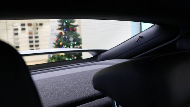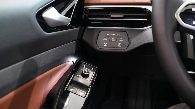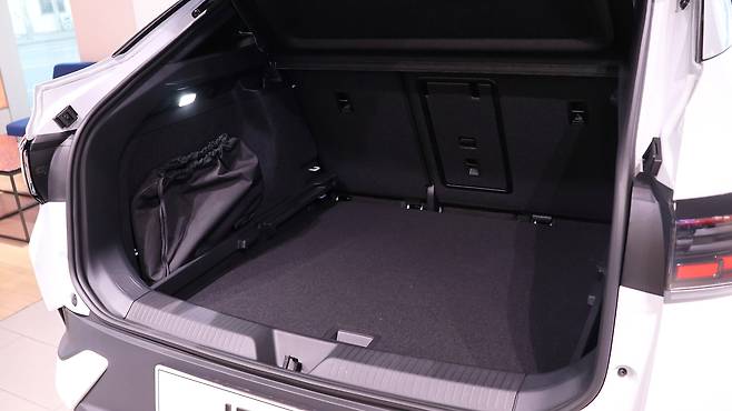 뒷좌석 공간이다. EV 전용 플랫폼을 채택한 덕분에 평탄하고 길게 확보된 레그룸이 강점이다. 에어벤트까지 낮게 배치하여 공간감 자체를 강조했다. 파노라마 글래스 루프의 개방감도 탑승감을 개선한다. 독립 공조도 탑재되어 있다. 쿠페형 SUV의 단점은 2열 헤드룸이 비좁아지는 것인데, ID.5의 경우 그 차이점을 체감하기 어려웠다. 루프라인이 헤드룸 시점보다 살짝 뒤에서부터 낮아지고, 트렁크 공간은 러기지 스크린으로 깔끔하게 차단된다. 시트 폴딩이 가능하며, 러기지 보드가 분리형이라 평소에는 바닥면을 낮추고 필요시 평탄화가 가능하다.