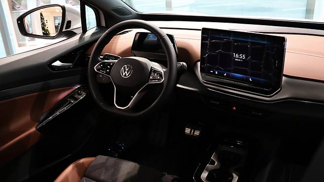 실내 디자인은 ID4와 동일했다. 약 5.3인치 크기의 플로팅 타입 디지털 클러스터와 12.9인치 대화면 센터스크린으로 인포테인먼트를 구축한다. 공조 기능을 센터스크린에 통합하면서, 센터페시아는 상당히 간결해진다. 비상등 버튼과 에어벤트만 남았다. 센터콘솔도 컵홀더와 수납공간만으로 구성되며 개방감을 확보했는데, 기어노브는 클러스터 우측에 배치된다. 다채로운 소재와 앰비언트 라이팅, D컷 멀티펑션 스티어링 휠이나 에르고 모션 시트의 조화가 고급감을 더했다. 전면 윈드실드 접합부에 설치된 라이트 바는 안전 경보장치로 적격하다.