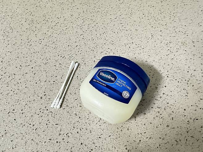 먼저 면봉에 바세린을 소량 덜어주세요.