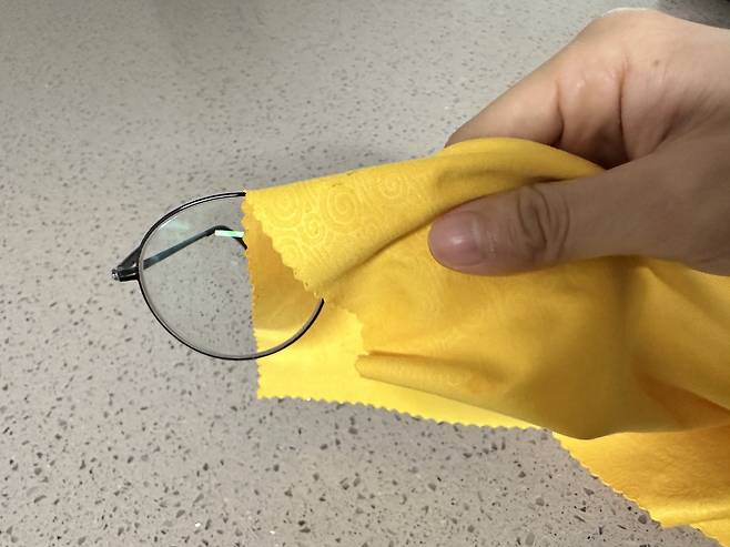 이제 물기를 잘 털어내 주시고 안경 닦는 천을 이용해서 깨끗하게 한 번 더 닦아주세요. 이렇게 해주시면 완전 끝!