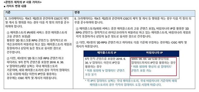 넥슨은 본지에 "원작을 보호하기 위해 원작과 동일한 장르 콘텐츠에만 적용되며 이 외 장르 콘텐츠에 대해서는 제한 없이 자유롭게 개발이 가능하다"면서 "범위는 면밀하게 검토하는 등 논의 과정을 거쳤다"고 설명했다. 원작과 동일한 게임을 만드는 것을 제한하기 위한 조치라는 의미로 해석된다.