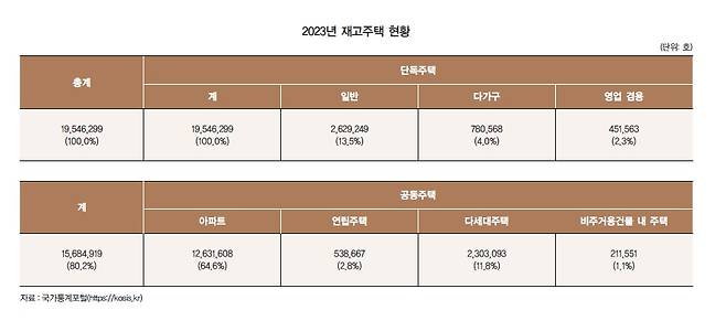 전체 주택 중 단독주택(일반, 다가구, 영업겸용 모두 포함) 비중은 1980년 87.4%, 1990년 66.0%로 대부분을 차지했지만, 2000년 37.1%를 거쳐 2023년에는 19.8%로 축소됐다.