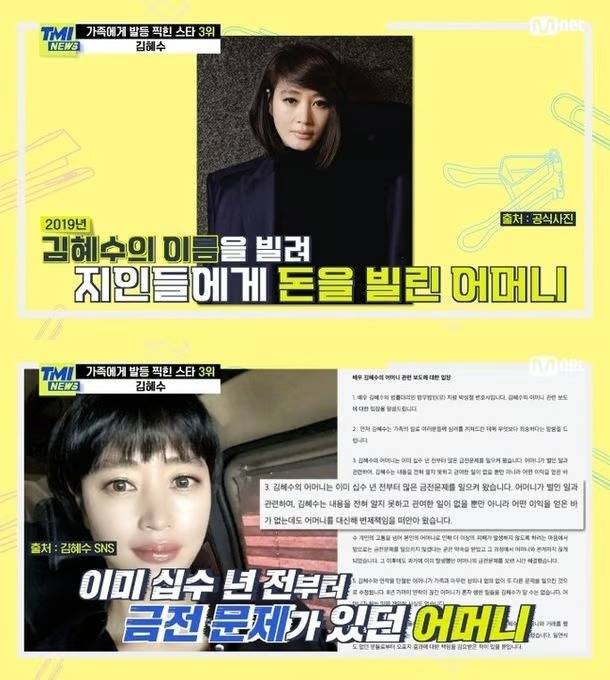 하지만 2019년, 어머니가 또다시 김혜수의 이름을 언급하며 타인의 돈을 빌린 사실이 드러났다.