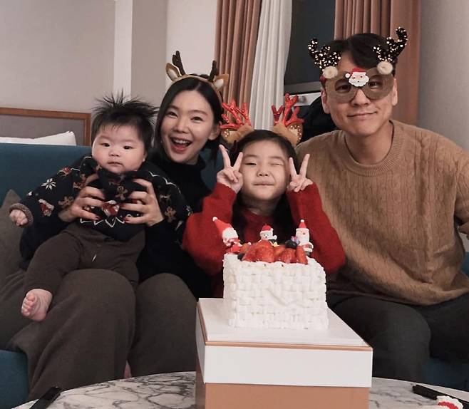 사진에는 이다은과 남편 윤남기, 두 자녀가 루돌프 머리띠와 안경을 쓰고 크리스마스 분위기를 한껏 낸 모습이 담겨 있다. 밝은 미소를 지으며 행복한 순간을 남긴 네 식구의 화목한 모습이 훈훈함을 자아낸다.