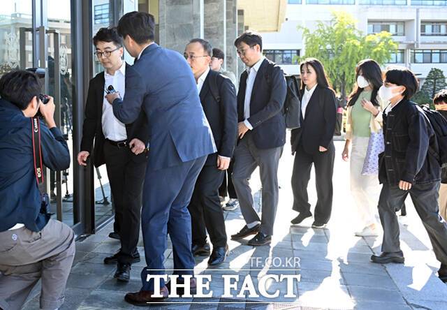 [더팩트ㅣ이새롬 기자] 서울대 의대가 지난 1학기부터 휴학계를 내고 수업을 거부한 의대생들에 대한 휴학을 승인한 가운데, 2일 오후 서울대 관악캠퍼스를 찾은 안상훈 교육부 감사총괄담당관을 비롯한 교육부 관계자들이 현지 감사를 위해 행정관에 들어서고 있다.