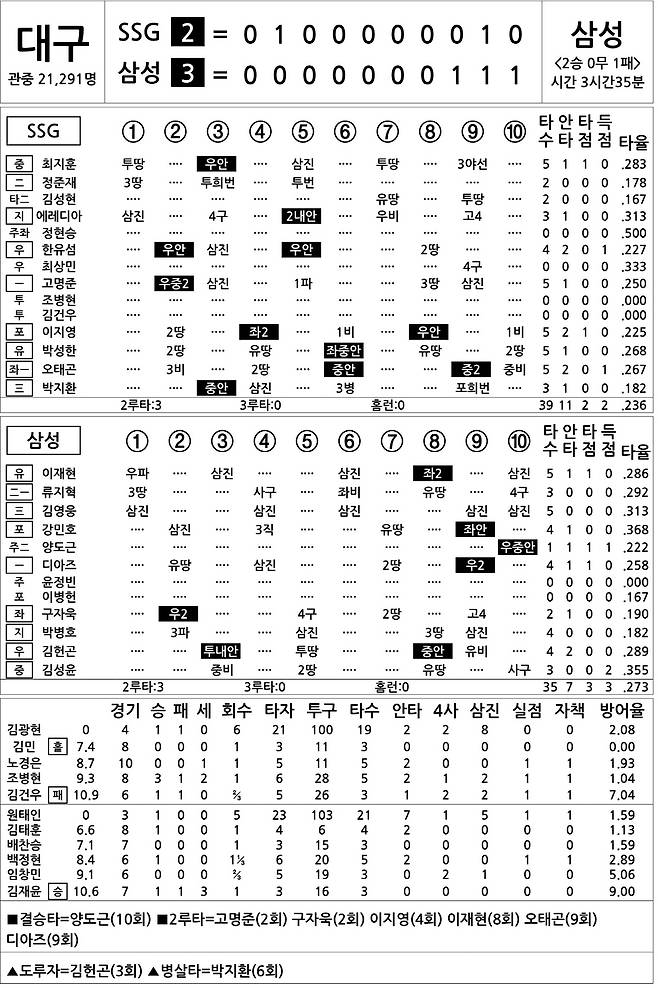 [2025 KBO리그 기록실] SSG vs 삼성 (4월 10일)