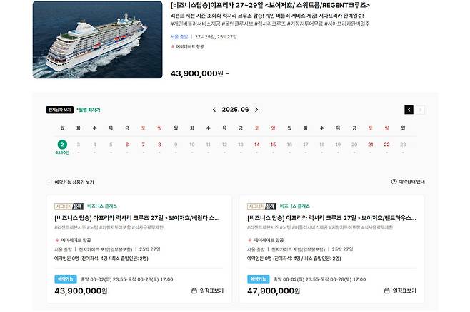 모두투어는 최근 5,000만 원에 육박하는 아프리카 크루즈 상품 등을 선보여 고급 시장에서의 입지를 확장하고 있다.