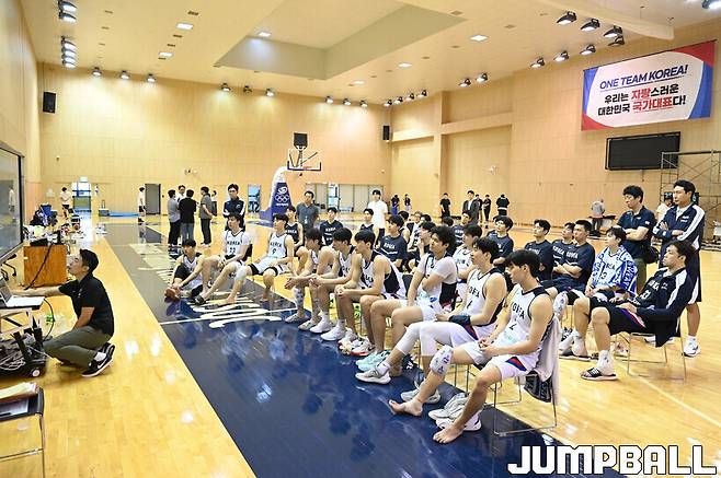 대한민국농구협회 관계자는 "30분 정도로 짧게 부탁했다. 성인 대표팀이랑 유니버시아드 대표팀이 동시에 이렇게 모이는 경우가 흔치 않다. 모인 김에 다 같이 숙지하고 가면 좋을 것 같아 이런 자리를 마련했다"고 설명했다.