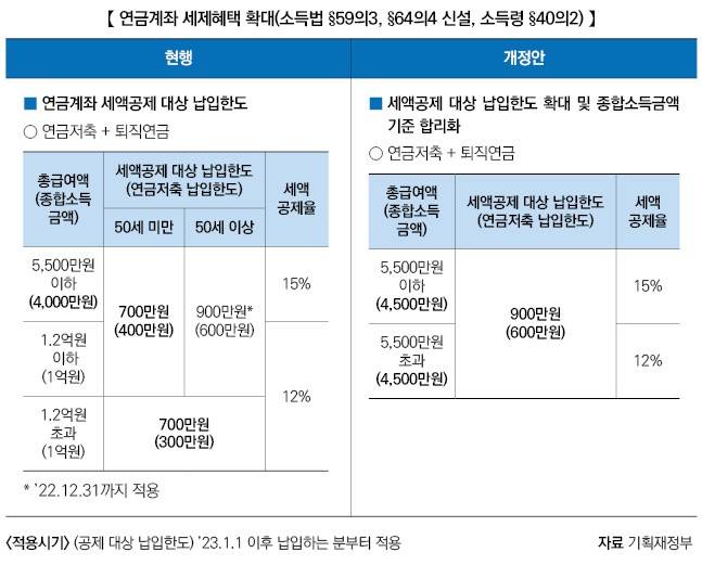 연금저축과 퇴직연금의 한도 기준