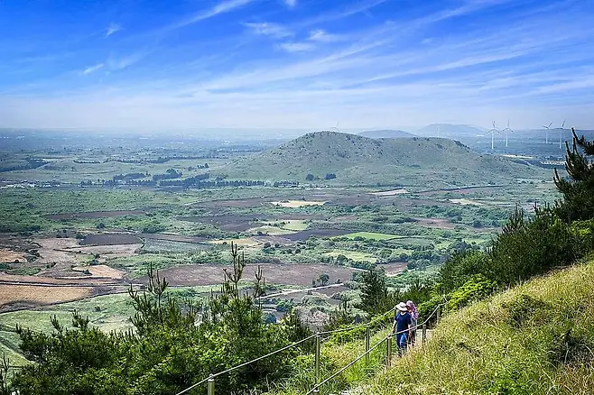 경사가 심하지 않아 천천히 올라가도 넉넉히 1시간 정도면 정상에 닿을 수 있으며, 오름 전체가 주변 풍경을 360도로 조망할 수 있게 되어 있다. 정상에 올라 내려다보면, 유채꽃으로 물든 평야부터 푸른 해안선까지 봄의 제주가 한눈에 펼쳐진다.