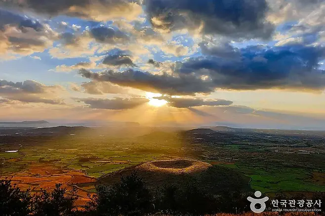 경사가 심하지 않아 천천히 올라가도 넉넉히 1시간 정도면 정상에 닿을 수 있으며, 오름 전체가 주변 풍경을 360도로 조망할 수 있게 되어 있다. 정상에 올라 내려다보면, 유채꽃으로 물든 평야부터 푸른 해안선까지 봄의 제주가 한눈에 펼쳐진다.