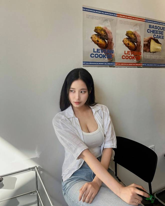 화이트 셔츠, 크롭탑, 연청 데님으로