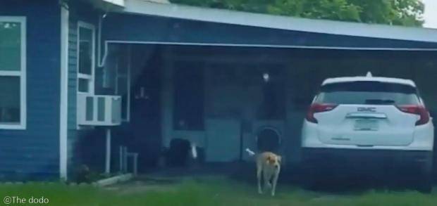 미국에 사는 여성 미건 킹은 어느 날 현관을 내다보다가 무언가와 눈을 마주치고 깜짝 놀랐다. 현관 앞에 깡마른 낯선 개 한 마리가 앉아 그녀를 쳐다보고 있었기 때문이다.