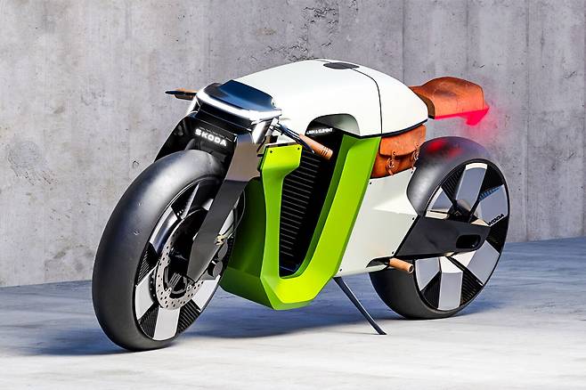 슬라비아 B는 원래 로린 & 클레멘트(Laurin & Klement) 브랜드로 제작된 모터사이클로, 슈코다의 전신이라 할 수 있다. 이번 콘셉트 모델은 그 역사적 유산을 현대적 조형미와 기술로 되살리는 데 초점을 맞췄다. 프레임 안쪽에 위치한 엔진 구조와 벨트 구동 방식, 보조 추진용 페달 등 19세기 말 기술이 담긴 클래식 모델의 디테일을 유지하되, 그 구조적 특징을 전기화된 시대에 맞게 유려한 디자인 언어로 정제해냈다. 프레임 중심부를 비워 공중에 뜬 듯 보이는 브랜드 엠블럼, 가죽 툴킷과 플로팅 시트, 강렬한 헤드램프 시그니처는 현대 모터사이클 디자인에 대한 슈코다의 새로운 시각을 드러낸다.
