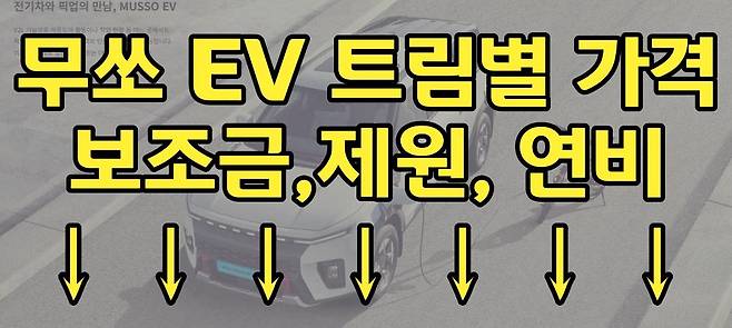 무쏘 EV의 판매가는 4천만 원 후반~5천만 원 초반대지만, 정부·지자체 보조금을 적용하면 실구매가는 3천만 원대 중반까지 내려간다. 특히 부가세 환급 등 추가 혜택이 가능한 소상공인·자영업자에게는 더 큰 매력이 된다.