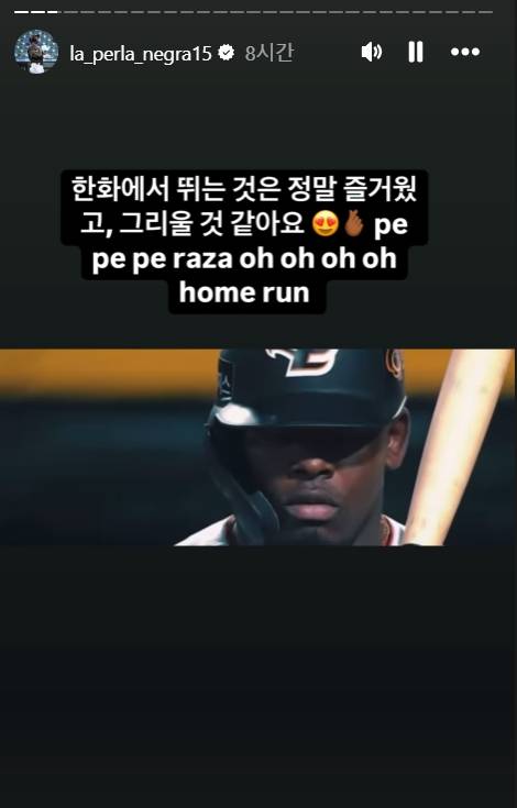 1년 만에 KBO리그 생활을 마무리한 페라자는 자신의 SNS를 통해 "한화에서 뛰는 것은 정말 즐거웠고, 그리울 것 같아요"라고 한글로 팬들에게 작별 인사를 남겼다. 한국식 손가락 하트 이모지 뒤에는 자신의 응원가의 가사인 "페 페 페 라자 오 오 오 오 홈런(pe pe pe raza oh oh oh oh home run)"을 영어로 적어 올리며 그리운 마음을 드러냈다.