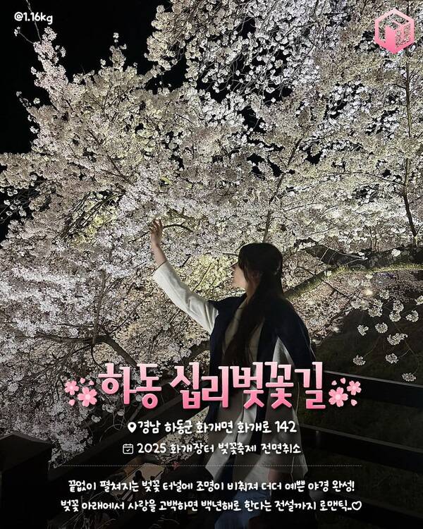 2025 하동 십리벚꽃길 벚꽃축제는 산불 피해 회복에 집중하기 위해 지자체 차원에서 전면 취소를 결정했습니다. 그럼에도 벚꽃은 아름답게 피어나있으니, 저녁 벚꽃 산책 코스로 잠시 들려보는 건 어떨까요?