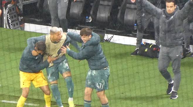 결승골이 터지는 순간, 토트넘 원정 팬석은 뜨거운 환호로 들썩였고,