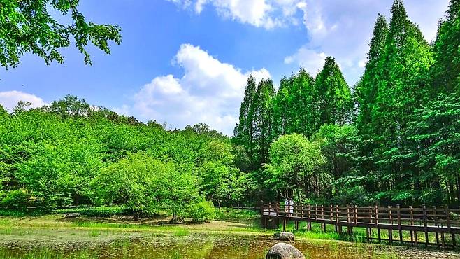 번째는 경상북도 안동의 ‘낙강물길공원’입니다. 여름에는 탁 트인 낙동강 옆 산책로를 따라 걷다보면 닿을 수 있는데요. 낙강물길공원의 대표 사진 스팟은 바로 작은 연못입니다. 징검다리가 놓여있는 연못 가장자리로 울창한 나무가 빼곡해 동화 속 한 장면을 연상케하는데요.