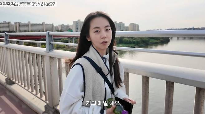 이어 "저희 집 앞에 한강을 걷거나 (중략) 저희집이 층수가 꽤 높잖아요 지하에서 부터 한번 올라가거나, 오늘 컨디션 좋다하면 두번 (올라요)"라며 주로 하는 유산소 운동을 설명했다.