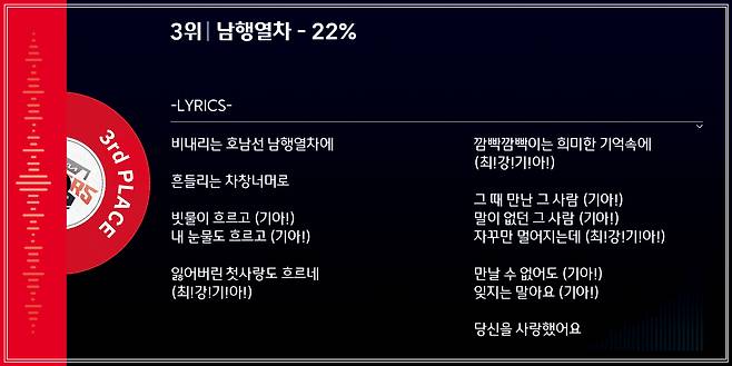 [3위 남행열차 - 22%]