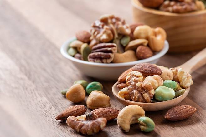특히 아몬드나 캐슈넛에는 히스타민 유사 물질이 포함돼 있어 염증 반응을 일으킬 수 있고, 견과류에 포함된 산화된 지방 성분은 혈관 내벽을 자극해 염증을 유발할 수 있습니다.