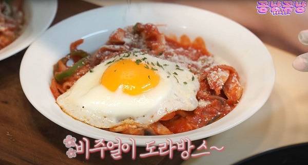 이날 그녀는 직접 다이어트용 나폴리탄 스파게티를 만드는 모습을 공개했습니다.