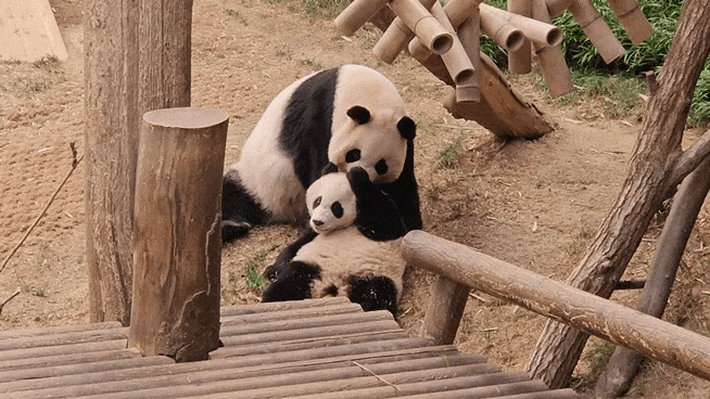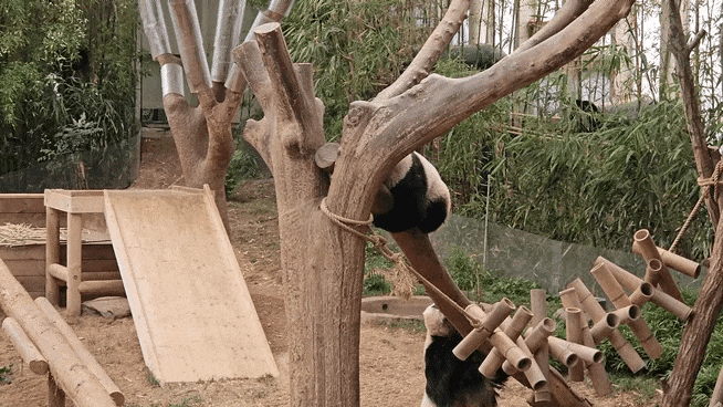 자연스레 딸을 혼자 놀게 하고, 딸이 나무에 다 올라간 것을 확인하고서 안심하고 발걸음을 돌려 나가는 아이바오... 이 모습에 팬들 모두 깜짝 놀랐는데요.