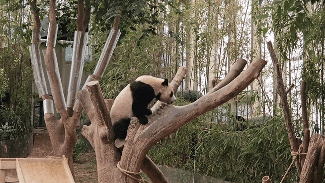 후이바오가 어부바나무에 다 오른 것을 확인한 후에야 안심하고 발걸음을 돌리는 아이바오.