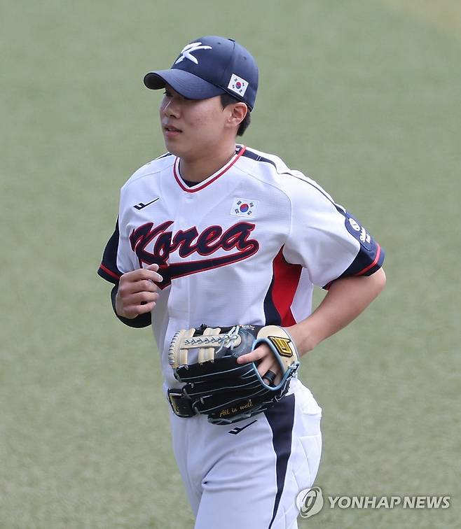(가데나[일본 오키나와현]=연합뉴스) 이진욱 기자 = 24일 일본 오키나와현 가데나의 가데나 구장에서 열린 2026 월드베이스볼클래식(WBC) 대한민국 야구대표팀과 KIA 타이거즈 연습경기. 3회초 상무 김호진이 대표팀 3루수로 출전해 있다. 2026.2.24