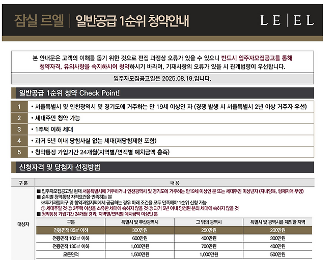잠실르엘은 단순한 ‘분양단지’ 이상의 의미를 갖고 있습니다. 현금 여력과 청약 전략을 갖춘 수요자라면, 이번 기회를 신중하게 검토해볼 만합니다. 앞으로 이보다 더 유리한 조건의 청약은 다시 오기 어렵다는 분석이 지배적입니다.