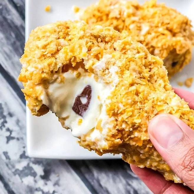 플레이크의 바삭바삭한 식감과 차가운 아이스크림의 조합이 상당히 맛있다고 함