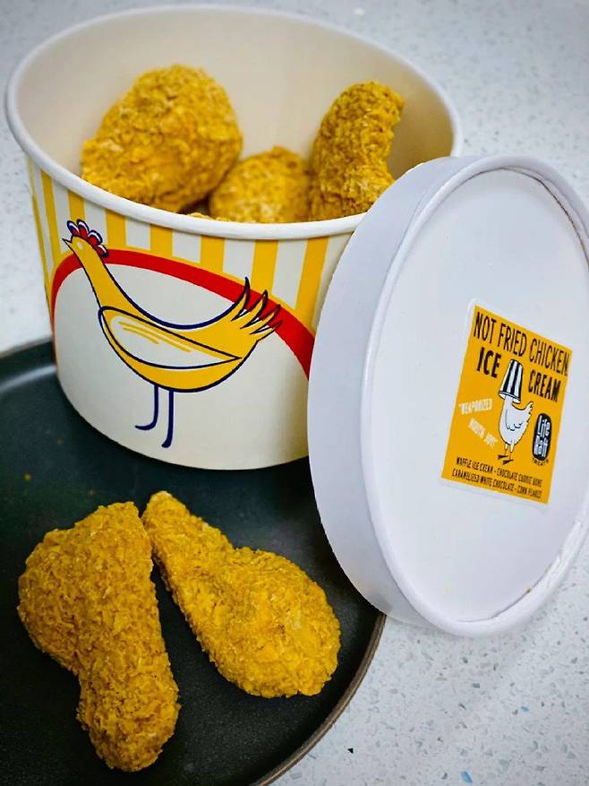 겉에는 옥수수 플레이크로 만든걸 붙였고 안에는 아이스크림, 뼈는 초코스틱으로 구현함ㅋㅋㅋ