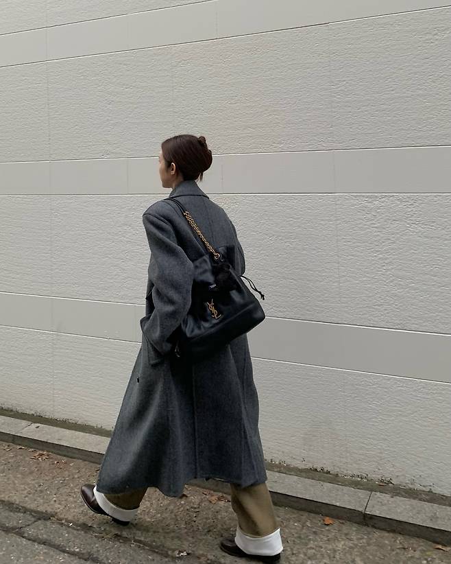 사진 속 차정원은 그레이톤의 롱코트를 입고 명품브랜드 입생로랑의 가방으로 포인트를 줬습니다.