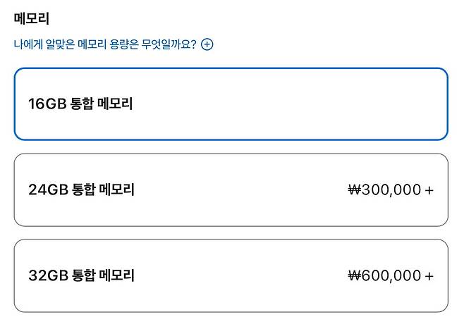 이러한 가성비에 일조하는 것이 바로 메모리입니다. 위에 언급한 대로 이번에 판매되는 모든 맥의 메모리는 최소 16GB부터로 올라갔습니다. 애플이 8GB 메모리를 기본으로 채택하여 많은 맥 사용자들에게 고통을 안겨주던 시대가 드디어 끝난 것이죠.