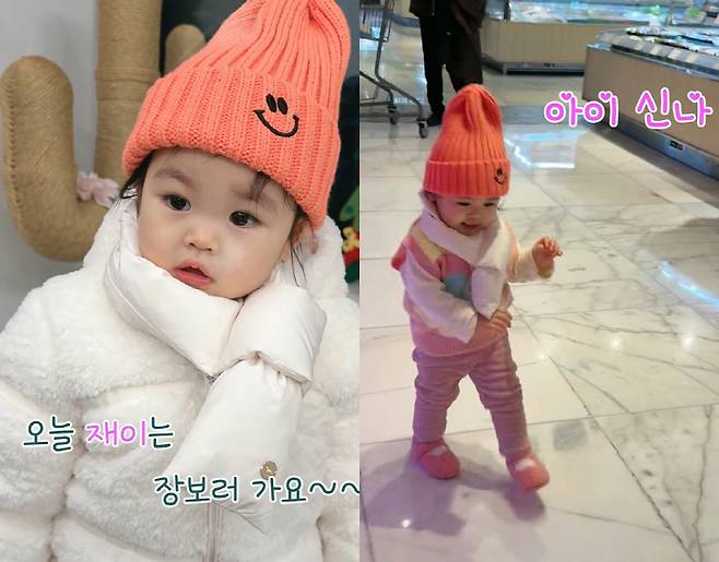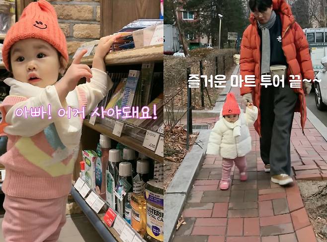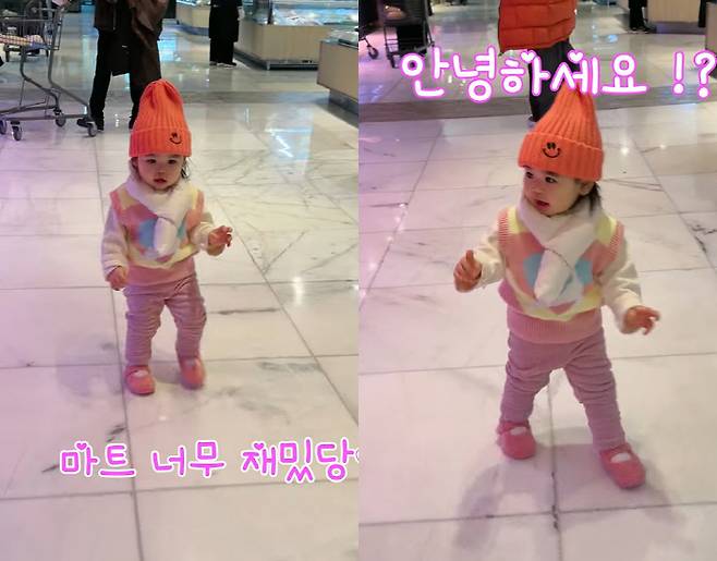 이어 한껏 신난 듯 환한 미소로 혼자 아장아장 걸으며 마트 이곳저곳을 구경 중인 재이 양의 뒷 모습이 귀여움 가득하다.