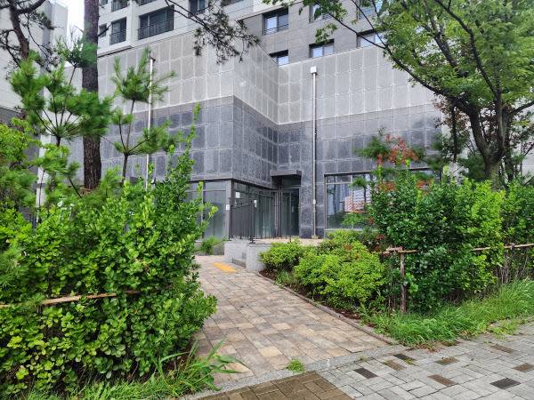 문제는 방음벽 설치로 인해 아파트 상가가 완전히 보이지 않게 됐다는 겁니다. 아파트 상가 접근성과 가시성 측면에서 엄청난 타격을 입었습니다. 실제로 상가 1, 2층 대부분에는 ‘임대’ 안내문이 붙어있습니다. 새 아파트 상가가 부동산으로 가득한 것과 달리, 이 단지 상가 1층은 부동산 한 곳과 카페, 편의점을 제외하면 아무 것도 없습니다.
