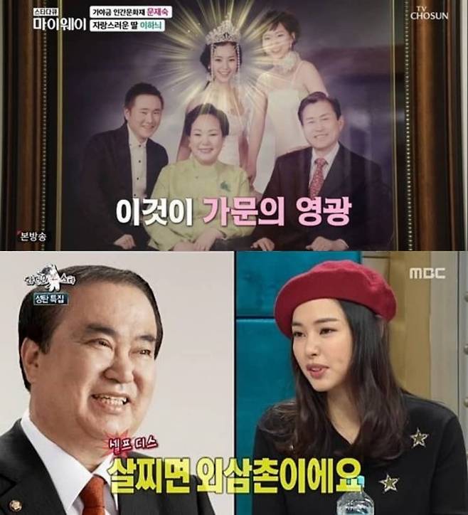 이하늬의 아버지 이상업은 국정원 제2차장, 서울강남경찰서장, 경찰대 학장 등을 역임했으며 어머니 문재숙은 가야금 무형문화재입니다. 이하늬의 외삼촌은 다선 국회의원으로 국회의장까지 맡았던 정치계 거물 인사인 문희상입니다.