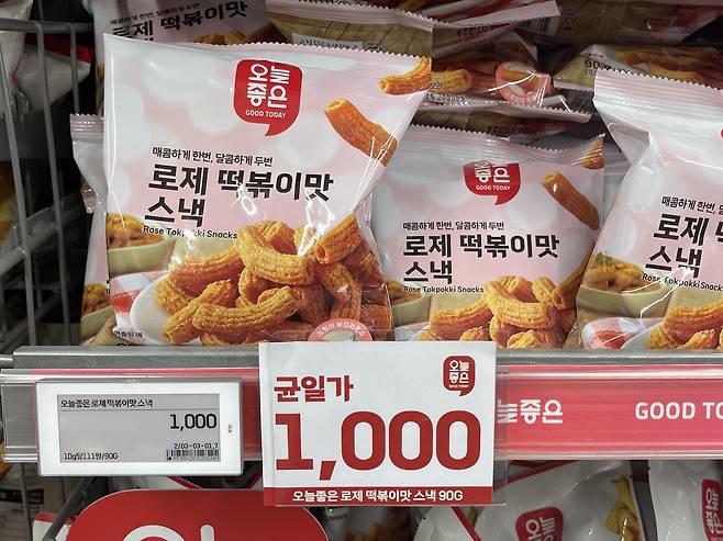 롯데마트 PB 브랜드 ‘오늘좋은’의 스낵으로, 매콤달콤한 로제 떡볶이 맛을 바삭하게 재현한 제품이에요.