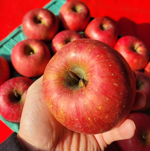 한국 사과(부사·홍로) 껍질 얇아 바로 먹기 좋음.